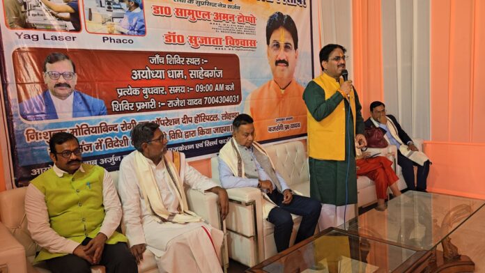 साहिबगंज/राजमहल: सेवा, संवेदना और संकल्प का संगम एक बार फिर बुधवार को भरतिया कॉलोनी स्थित अयोध्या धाम परिसर में देखने को मिला, जहां जिले के लोकप्रिय नेता व समाजसेवी बजरंगी प्रसाद यादव की पहल पर नि:शुल्क मोतियाबिंद ऑपरेशन शिविर का आयोजन किया गया। शिविर में बड़ी संख्या में जरूरतमंद लोगों ने पहुंचकर आंखों की जांच कराई। जांच के बाद मोतियाबिंद से पीड़ित करीब 350 लोगों को ऑपरेशन के लिए चिह्नित किया गया, जिनका नि:शुल्क उपचार साहिबगंज स्थित दीप आई हॉस्पिटल में किया जाएगा।