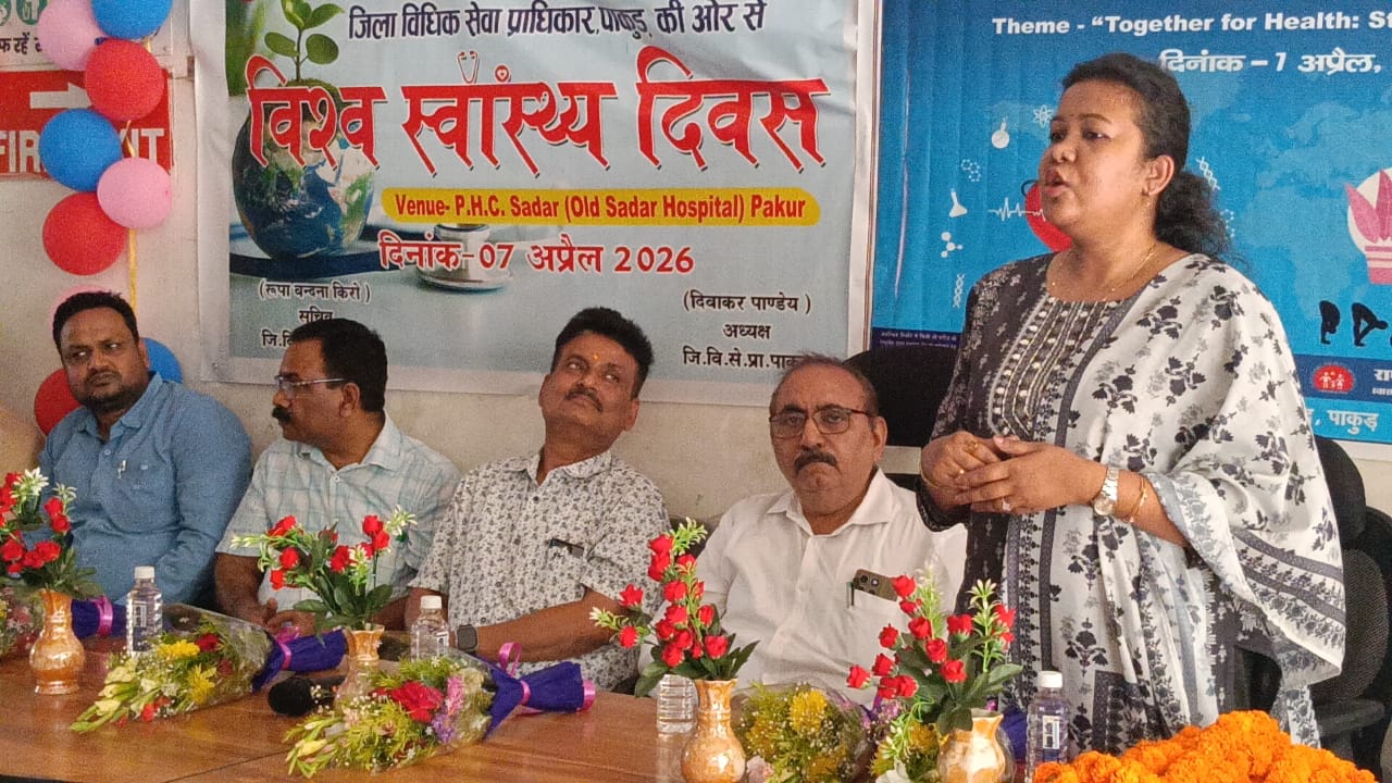 जैसा कि आज विश्व स्वास्थ्य दिवस के रूप में 7 अप्रैल पूरे दुनिया में मनाया जाता है मानव जीवन में स्वास्थ्य का बड़ा महत्व है बिना अच्छे स्वास्थ्य के मानव जीवन दुखों का कारण बन जाता हैं इसलिए जन्म से लेकर वृद्धा अवस्था तक स्वास्थ्य की आवश्यकता पड़ती है मानव के विकास में बिना स्वास्थ्य की परिकल्पना नहीं की जा सकती है इसी क्रम में जिले के सिविल सर्जन पाकुड़ डॉक्टर सुरेंद्र कुमार मिश्रा ने बताया कि आज सभी लोगों अच्छे स्वास्थ्य की आवश्यकता है बढ़ते प्रदूषण के कारण लोग बीमारियों से ग्रसित हो रहे है एवं खान पान की गलत आदतों के कारण बीमारियां बढ़ रही हैं l लोगों स्वास्थ्य रहने के लिए अच्छे खान पान एवं अपने जीवन शैली में सुधार करना होगा प्रतिदिन योगा करना होगा एवं जंक फुड को दैनिक जीवन से बाहर करने से बहुत बीमारियों से बचा जा सकता है l जिला विधिक सेवा प्राधिकरण की सचिव श्रीमती रूपा वंदना ने विश्व स्वास्थ्य दिवस पर अपना विचार व्यक्त किया उन्होंने बताया कि अच्छा स्वास्थ्य जीवन खुशियों का भंडार होता है अगर शरीर एवं मन स्वास्थ्य न रहे तो सारी खुशियों पर पानी फिर जाता है इसलिए अपने परिवार समाज में स्वास्थ्य का बहुत महत्व है। इस प्रकार डॉ संजय कुमार झा, डॉ कौशल कुमार सिंह, श्री अमरेंद्र चौधरी ने भी अपना मंतव्य व्यक्त किया लीगल एड डिफेंस कॉन्सिल सिस्टम के डिप्टी चीफ संजीव कुमार मंडल ने कानूनी अधिकार समेत स्वस्थ जीवन शैली पर प्रकाश डाला। कार्यक्रम में अच्छे कार्य करने वाले जन को सम्मानित किया गया। कई टी बी रोगियों को पोषण पैकेट दिया गया तथा कार्यक्रम में आए नव दंपत्ति को परिवार कल्याण कार्यक्रम योजना के तहत नई पहल किट का वितरण भी किया गया l मौके पर अधिकारी के अलावा पाकुड़ नगर के सबसे कम उम्र की वार्ड पार्षद तनु दास सोशल वर्कर अंजारुल शेख ,मोहम्मद मोइनुद्दीन इस्लाम ,मुख्तार अहमद, आसिकुल रहमान अब्दुल हकीम पैरा लीगल वॉलिंटियर्स कमला राय गांगुली उत्पल मंडल नीरज कुमार राउत समेत अन्य मौजूद रहे।